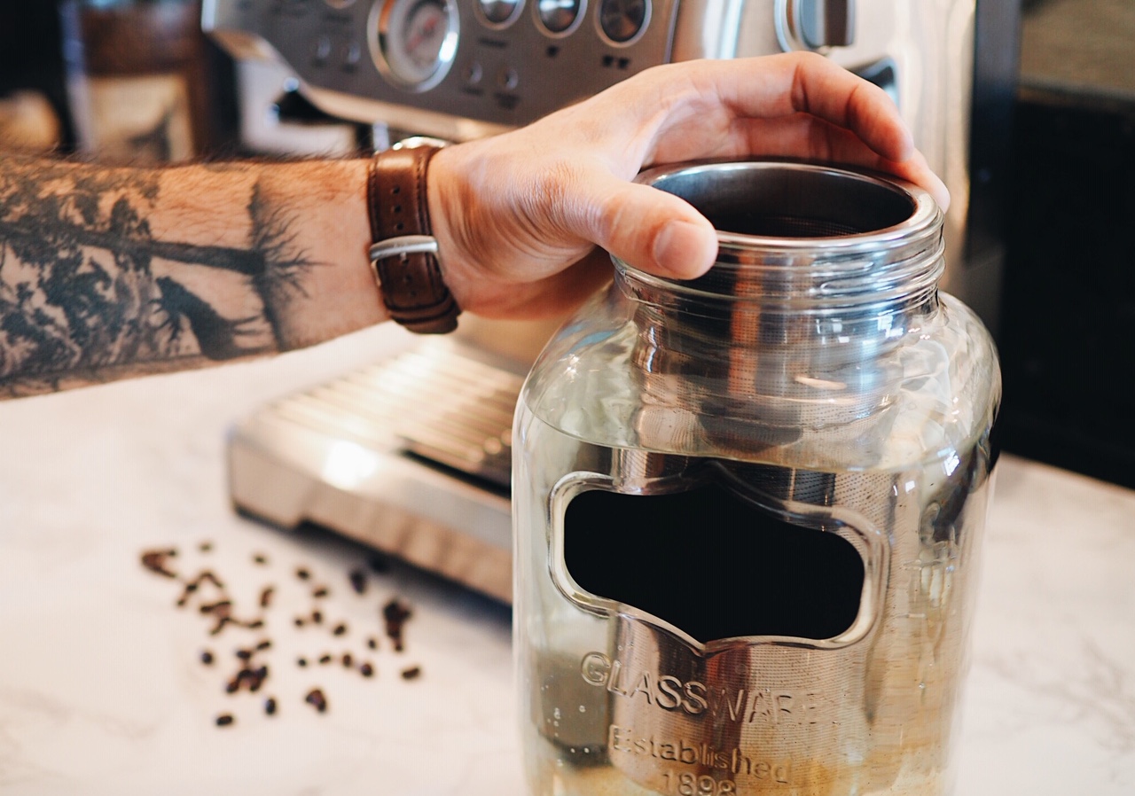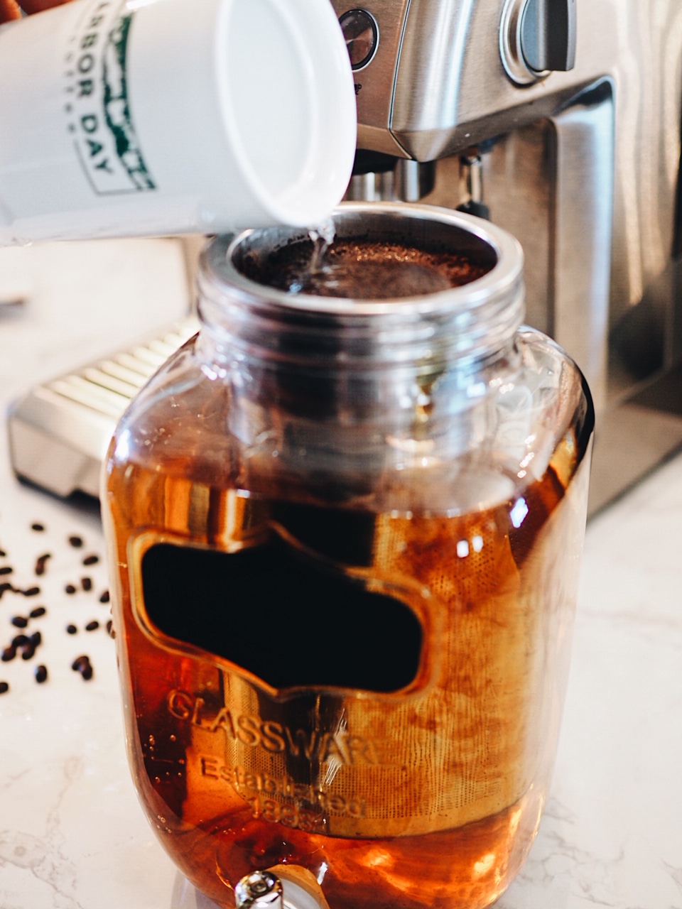 This specific coffee is pretty strong – even for my caffeine-addicted husband – so if you don’t like strong coffee, you can use fewer coffee grounds (or grind the beans more) for your cold brew.