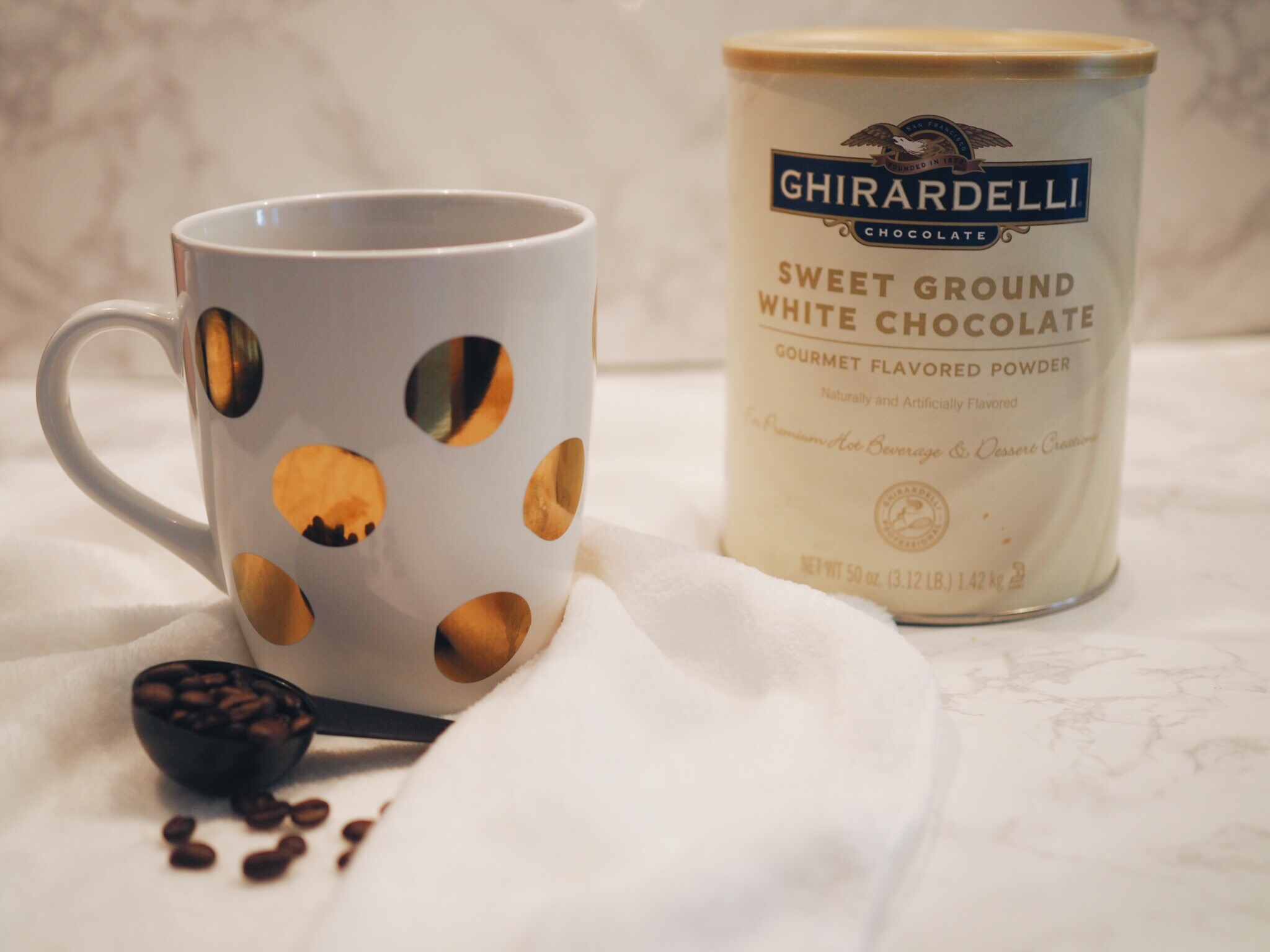 7. Pour your coffee into your cup, add white chocolate mocha, whipped cream, raw sugar and cinnamon (see recipe above) and ENJOY!