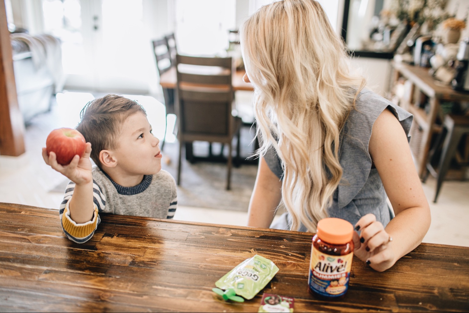 We also always add a multivitamin to our breakfast regimen. Sutton takes a gummy Alive Multivitamin, I take the AliveWomen’s Ultra Potency Multivitamin and Jesse takes the AliveMen’s Once Daily Ultra Potency Multivitamin! They are part of our daily regimen to help support Sutton’s immunity) and they help to support our overall health*!