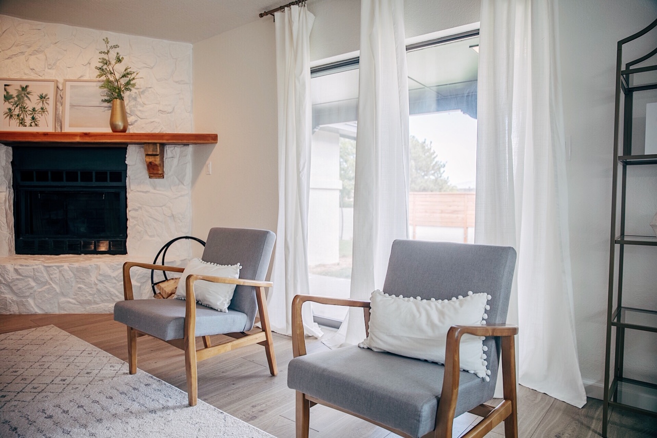 I had a specific type of chair that I wanted and was so thankful to find these Vancouver Armchairs on Wayfair! I wanted something that tied the two sofas together. The wood arms and gray cloth matched perfectly and they are really comfortable which is also a huge plus! Find more chairs like this.