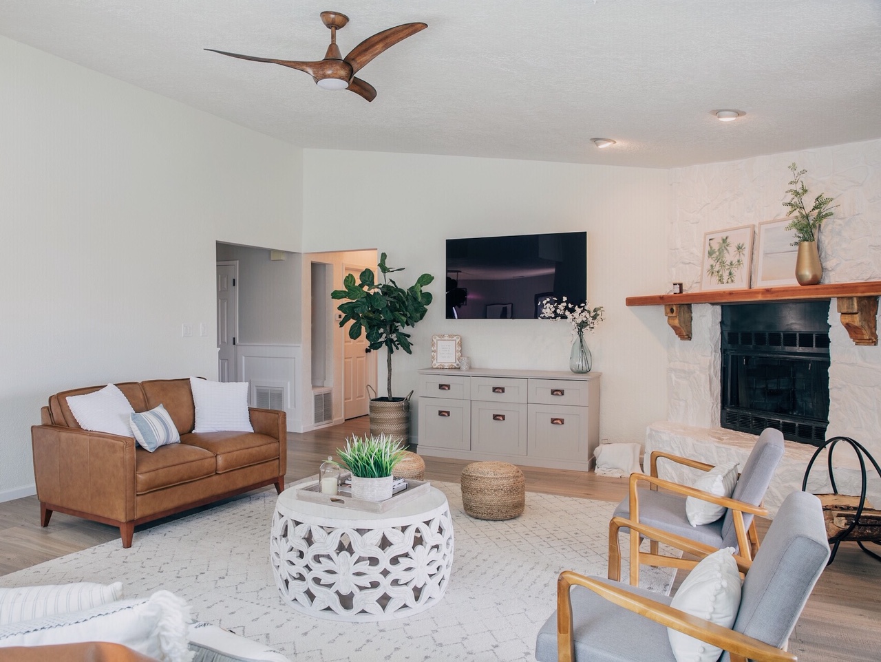 Designing this fixer upper has been so much fun, especially this bright white living room, but I have to be honest and say that the best part is that it has become a “home” for our little family of four.