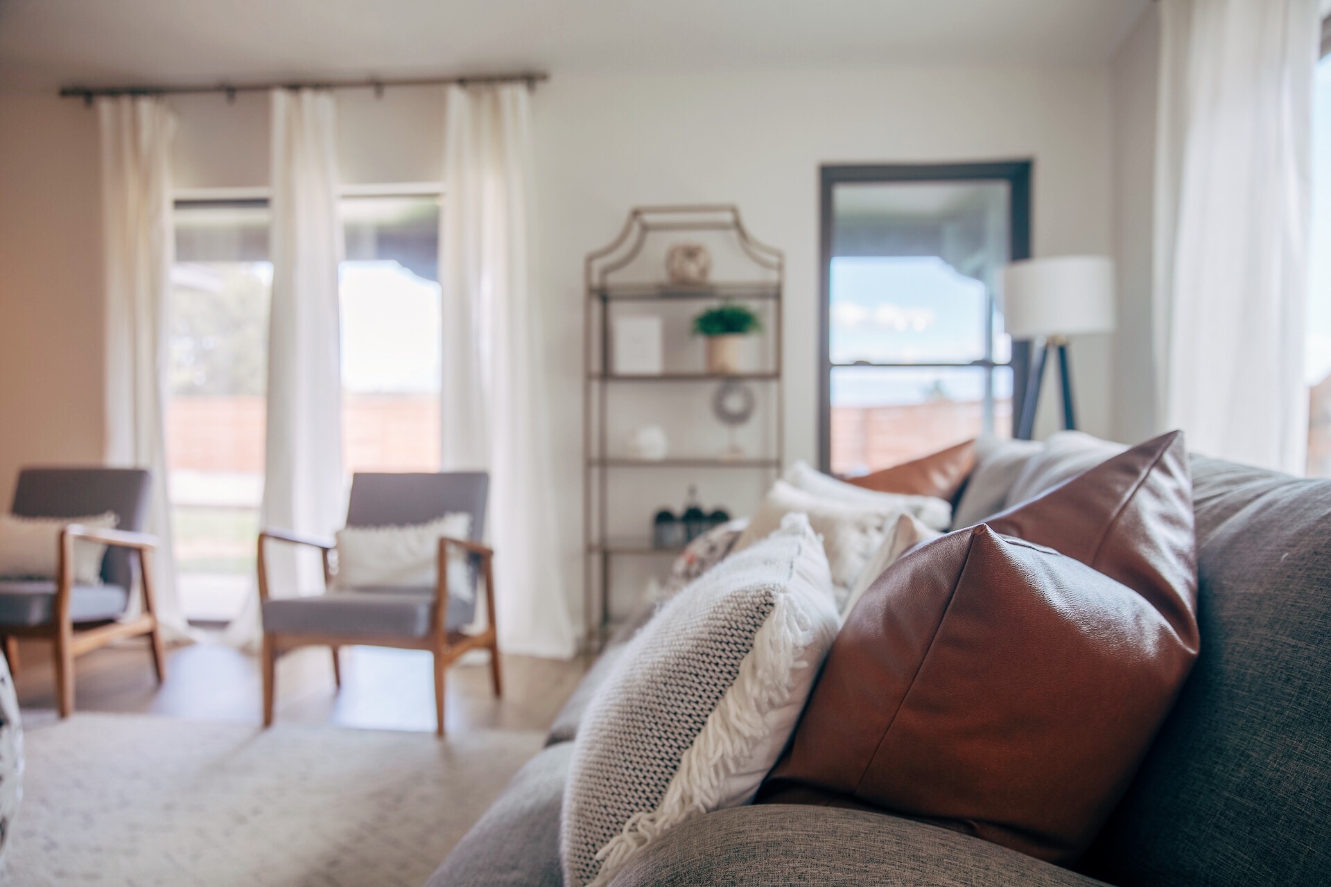 I had a specific type of chair that I wanted and was so thankful to find these Vancouver Armchairs on Wayfair! I wanted something that tied the two sofas together. The wood arms and gray cloth matched perfectly and they are really comfortable which is also a huge plus! Find more chairs like this.