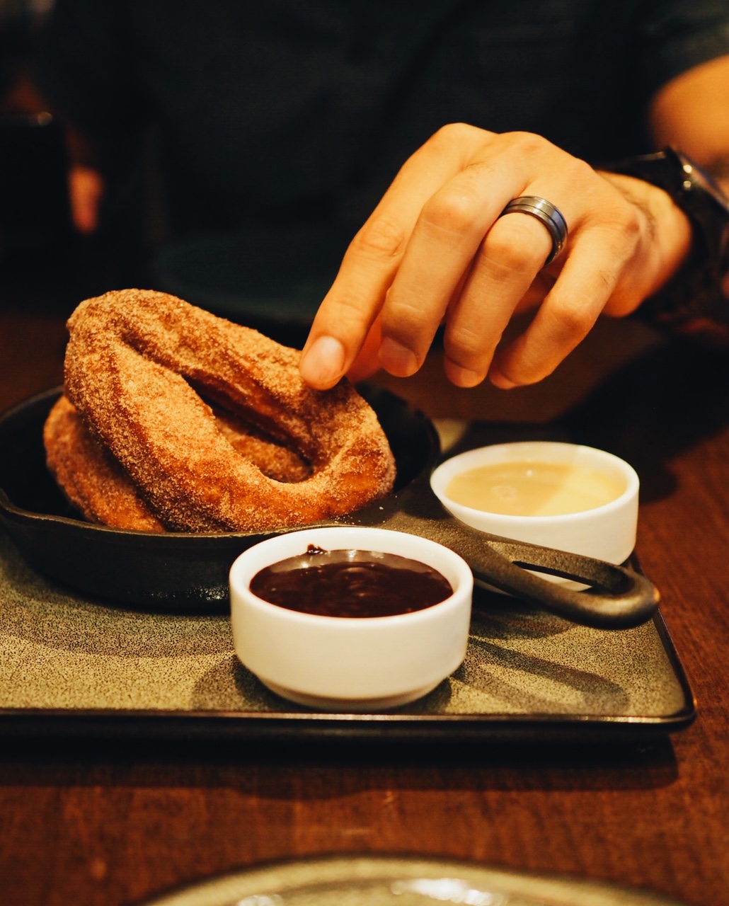 We finished off the meal with perfectly soft-on-the-inside, crispy-on-the-outside, cinnamon sugar churros, dipped in chocolate sauce.